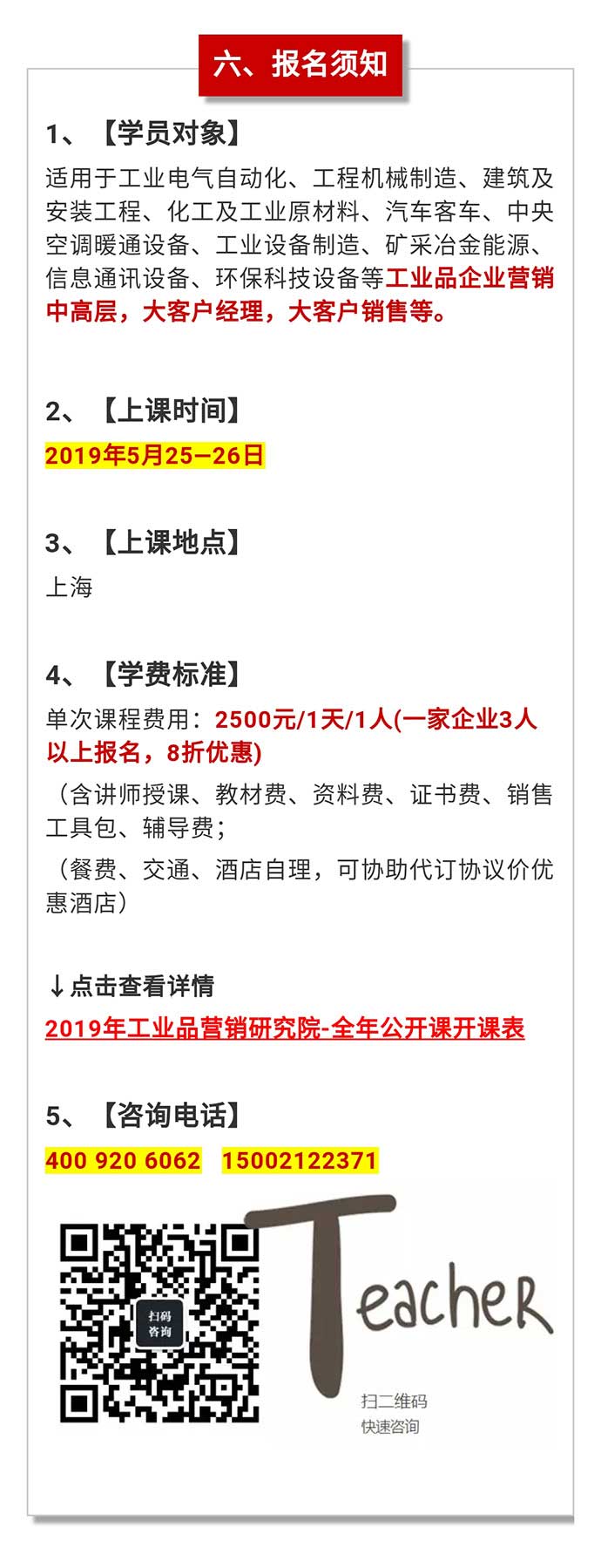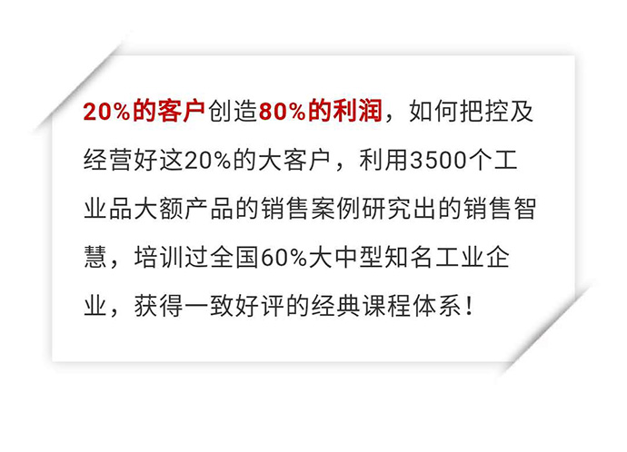 【公開課預(yù)告】2019年5月25—26日工業(yè)品營銷《做大單-靠團(tuán)隊靠系統(tǒng)》公開課! 點擊次數(shù):6606發(fā)布時間:2019-4-28 21:00:37 上一條:【公開課預(yù)告】9月27-29日工業(yè)品營銷精英人才壓模系統(tǒng)公開課即將開課下一條:【公開課預(yù)告】2019年6月15-16日項目型銷售與標(biāo)準(zhǔn)化管理—講師授證班