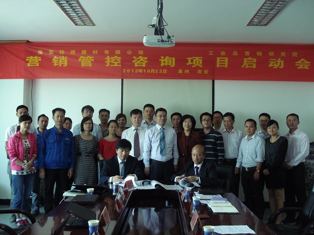 2012年10月22日上午,南安協(xié)進(jìn)建材有限公司營銷管理與能力提升體系建設(shè)項(xiàng)目啟動(dòng)儀式在公司總部成功舉行。協(xié)進(jìn)公司總經(jīng)理王家助與工業(yè)品營銷研究院院長丁興良代表雙方簽署了項(xiàng)目咨詢合作協(xié)議書,并宣布項(xiàng)目領(lǐng)導(dǎo)小組成立,以此表示對(duì)該項(xiàng)目的高度重視和積極支持。