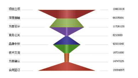 銷售漏斗通過對客戶進(jìn)行優(yōu)先排序管理,核心解決了大客戶營銷管理中項(xiàng)目發(fā)展與資源調(diào)配,項(xiàng)目進(jìn)展情況評估和針對策略的選擇以及變化的問題。通過銷售漏斗的運(yùn)用,我們可以定性定量地掌握項(xiàng)目進(jìn)展,分析并制定有效的競爭策略,綜合評估項(xiàng)目進(jìn)展結(jié)果,有針對性的制定項(xiàng)目發(fā)作站的后續(xù)行動計(jì)劃。