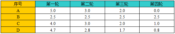 A方案采取了分別是15萬(wàn)、9萬(wàn)、6萬(wàn)的三輪降價(jià)方式,B方案采取了分別是2.5萬(wàn)的四輪降價(jià)方式,C方案則采取了分別是12萬(wàn)、9萬(wàn)、6萬(wàn)、3萬(wàn)的四輪降價(jià)方式,而D方案采取了分別是14.1萬(wàn)、8.4 萬(wàn)、5.1萬(wàn)、2.4萬(wàn)的四輪降價(jià)方式。