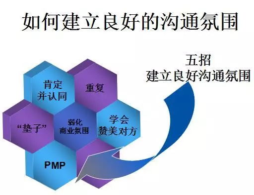 首先,看下圖,如何用五招,建立良好的溝通氛圍: