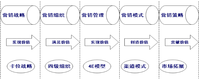 工業(yè)品營(yíng)銷系統(tǒng)是工業(yè)企業(yè)為客戶創(chuàng)造價(jià)值,實(shí)現(xiàn)與客戶的交換,并最終獲得銷售收入和投資回報(bào)的龐大系統(tǒng),具體包括營(yíng)銷戰(zhàn)略、營(yíng)銷組織、營(yíng)銷管理、營(yíng)銷模式、營(yíng)銷策略五大子系統(tǒng)。從營(yíng)銷價(jià)值的角度來(lái)看,這五大子系統(tǒng)也分別是從發(fā)現(xiàn)價(jià)值、滿足價(jià)值、實(shí)現(xiàn)價(jià)值到創(chuàng)造價(jià)值、貢獻(xiàn)價(jià)值的動(dòng)態(tài)過(guò)程。