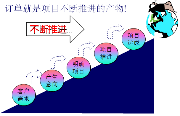 訂單就是項目不斷推進的產(chǎn)物,從客戶的需求,客戶產(chǎn)生意向,明確項目,到項目的推進,到最終項目達成,這是一個循環(huán)的過程。(如圖所示)