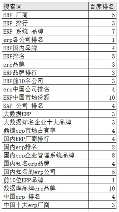 10天30多條,一個月30天差不多100條,剛才也說了,這些詞都是客戶在ERP軟件選型階段所使用的關鍵詞,重要性堪比這些詞:ERP軟件公司、上海SAP代理商、北京ERP軟件供應商。以我多年為多家ERP公司提供網(wǎng)絡營銷服務的經(jīng)驗來看,如果這些流量是通過付費的廣告進來的,每次點擊至少需要10元以上,一個月差不多等值于1000元以上的廣告費。