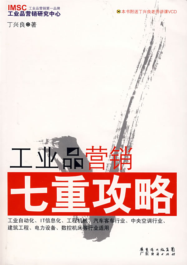《工業(yè)品營銷七重攻略》這本書,針對工業(yè)行業(yè),從市場營銷、銷售管理、市場拓展、銷售技巧、售后服務(wù)等角度展開一個系統(tǒng)性主題,主要介紹了工業(yè)品行業(yè)自身的特點,經(jīng)及工業(yè)品營銷的基本理論,例如IMSC的“四度理論、銷售管理的‘天龍八部’”“搞定大客戶的九字訣”“售后服務(wù)中心用心對心”等等。